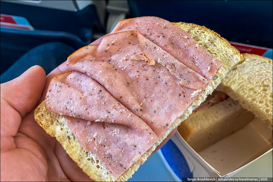 Обычно в Европе на таких коротких рейсах можно рассчитывать разве что на стакан воды, в лучшем случае печеньку или крохотный пакетик с крекерами, ну или на тот самый отвратительный бутерброд, который я недавно показывал.