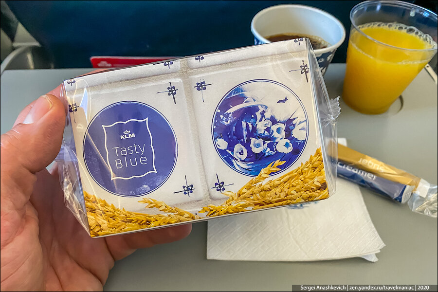 И вдруг вижу, стюардесса KLM раздает коробочки с какой-то едой.