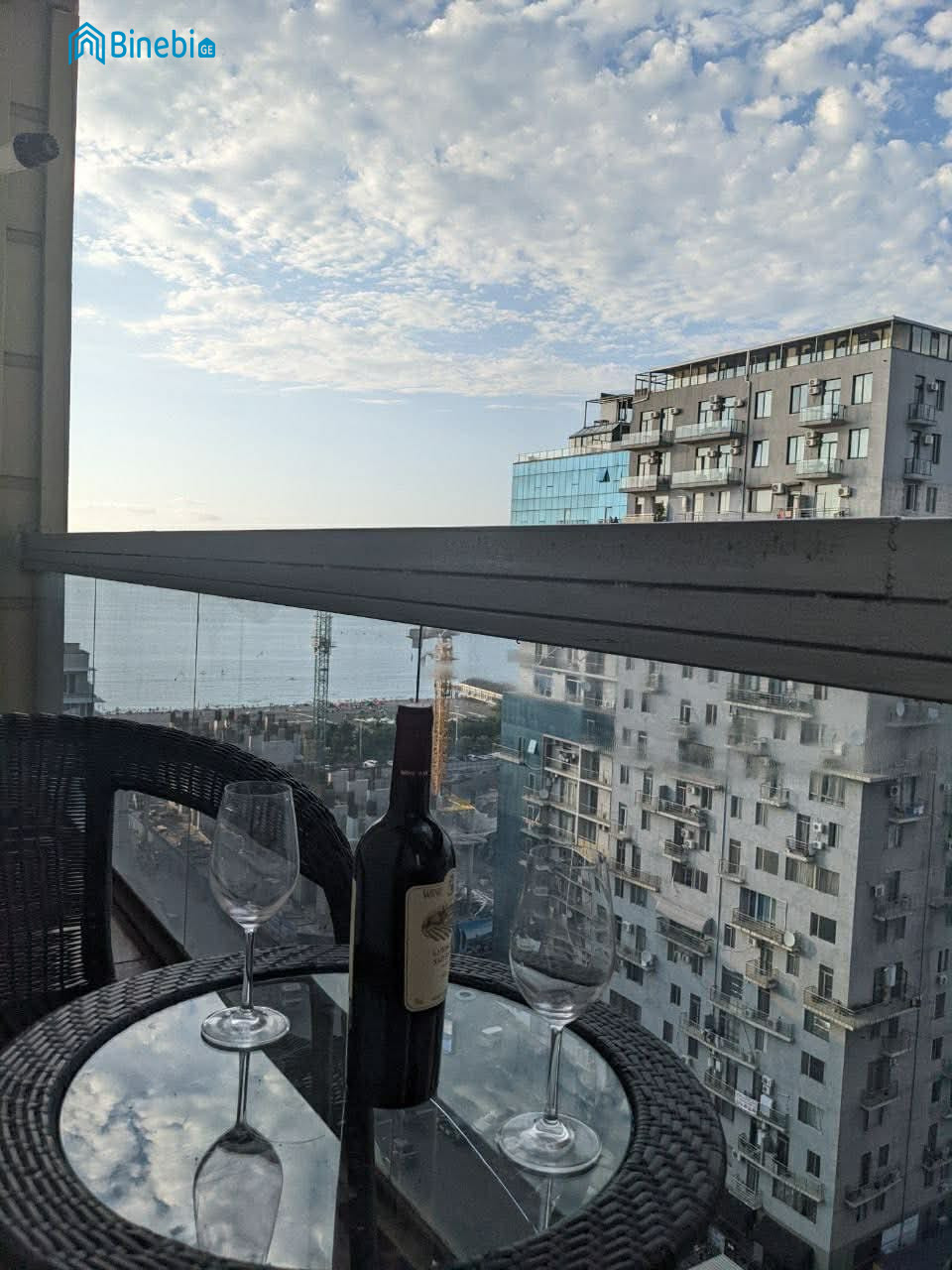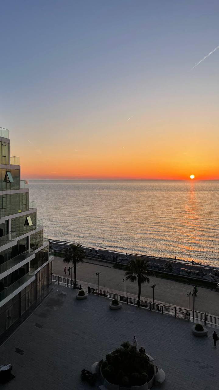 Вид из окна довольно приятный. Квартира расположена не на первой линии, но море все равно видно. Совсем скоро наступит лето, и можно будет ходить купаться.