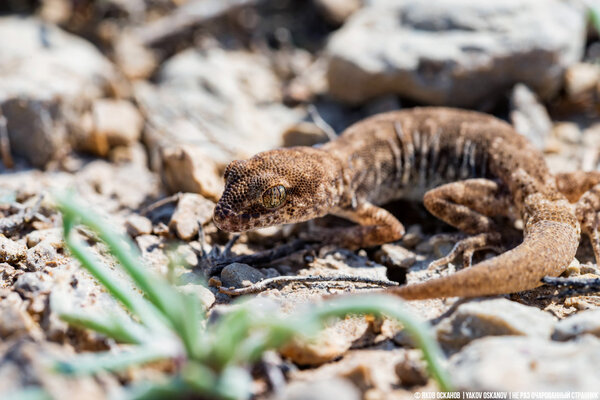Именно скалистая вершина этой горы служит единственным в нашей огромной стране пристанищем для крошечного и очень редкого существа — пискливого геккончика. Узнав, что в России есть такое удивительное создание, я просто не мог упустить шанс его увидеть. Тем более что эта ящерка — живой символ Богдинско-Баскунчакского заповедника, где мне довелось работать фотографом.