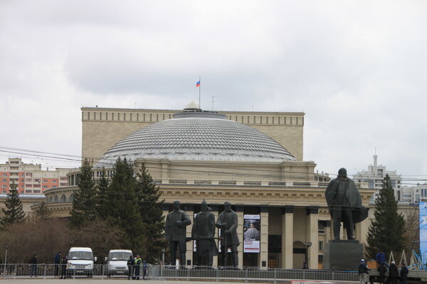 Я советую не ограничиваться одним фасадом, а обойти театр по периметру — с разных точек он раскрывается по-новому. Он горделиво возвышается на площади Ленина, которую окружает ансамбль зданий, будто учебник по архитектуре: здесь и модерн, и конструктивизм, и сталинский ампир. Это место — квинтэссенция новосибирской застройки.
