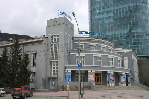 Напротив «Красного факела» расположены еще две выдающиеся постройки. Дворец культуры Октябрьской революции — превосходный, лаконичный образец конструктивизма, который я просто обожаю. И здание училища в стиле сибирского модерна. Вместе они образуют уникальный архитектурный ансамбль на одном перекрестке.