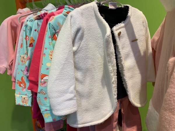 Одежда разложена по размерам. Верхняя и нижняя — всё в общей куче, потому что в бразильском доме температура воздуха часто такая же, как на улице. Зимой ночью бывает и +5. Дома, соответственно, тоже. Вот и представьте, как тут одевают малышей, чтобы они не замёрзли.