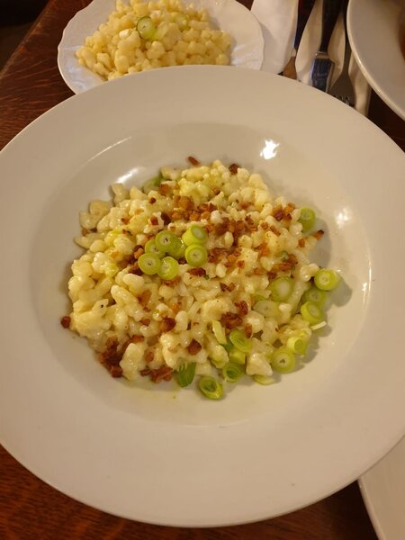 Как я позже узнала, галушки с брынзой — это визитная карточка словацкой кухни. Их традиционно готовят из муки, воды, картофеля и, конечно, солёной брынзы. Подают это сытное блюдо, щедро посыпав сверху кусочками копчёного сала или мяса и свежим зелёным луком.