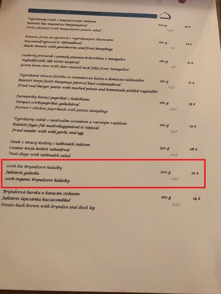 Но настоящее удивление меня ждало, когда я увидела в списке блюд... галушки! Причём они присутствовали практически в каждом ресторанчике и позиционировались как одно из национальных словацких блюд.