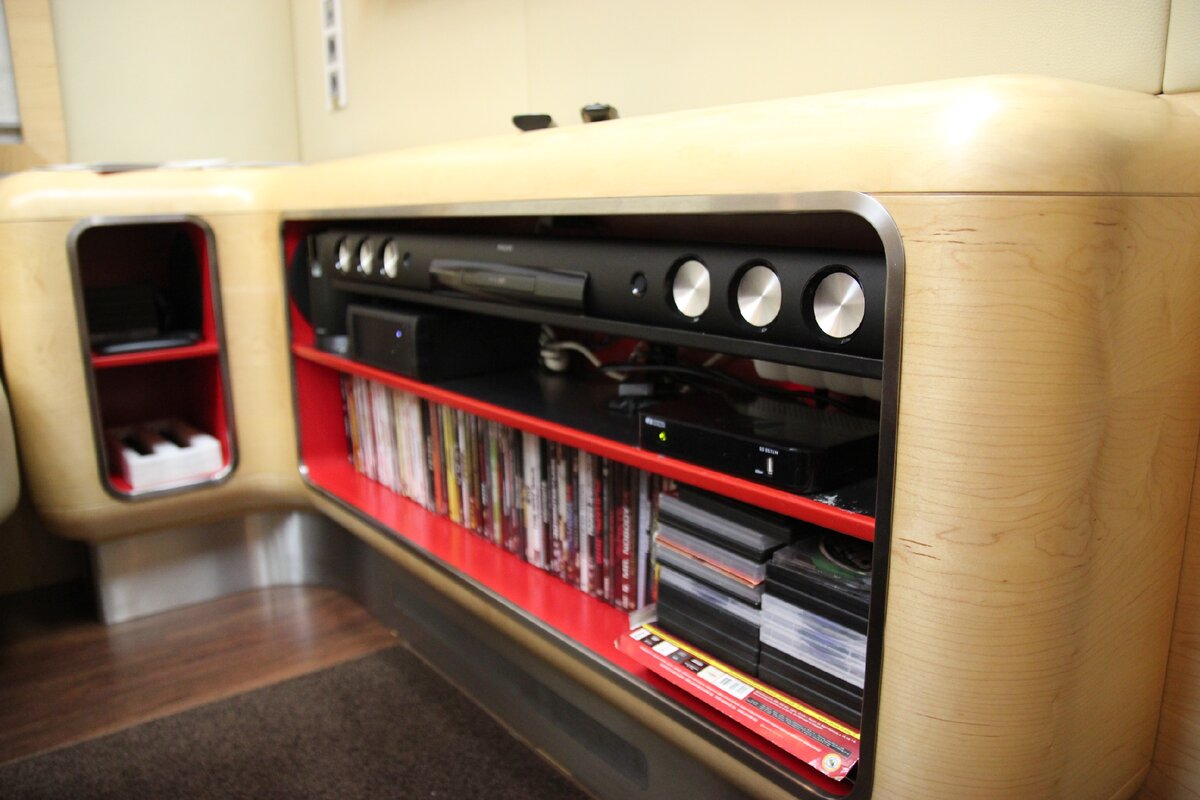 Далее – холл, где можно разместиться в уютных кожаных креслах за большим столом переговоров. Там же – большой телевизор, на котором крутят какие-то клипы, а также можно посмотреть DVD.