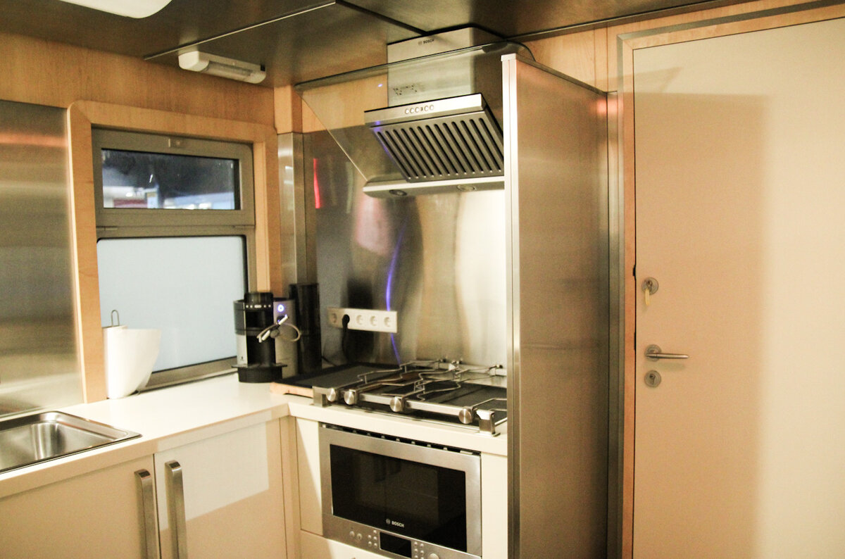 Вагон, в котором могут разместиться всего три пассажира, некоторое время ходил между Москвой и Петербургом в составе частного поезда «Мегаполис». В 2018 году незадолго до снятия этого вагона с маршрута я прокатился на нем.