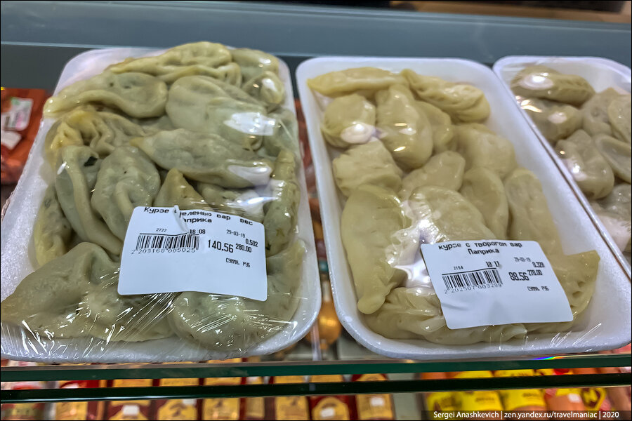 Кстати, хинкал (не хинкали, а именно хинкал) здесь тоже продаётся и выглядит он оооооочень странно.