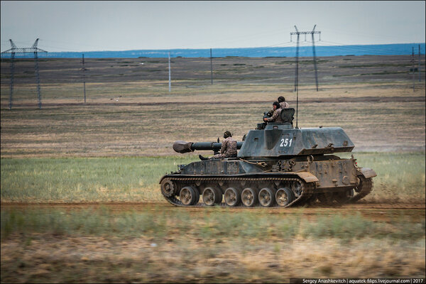 Но самое интересное — это то, что можно увидеть из окна автомобиля. Представьте: едешь по трассе, смотришь в боковое окно и видишь, как по полю мчится самоходная артиллерийская установка!