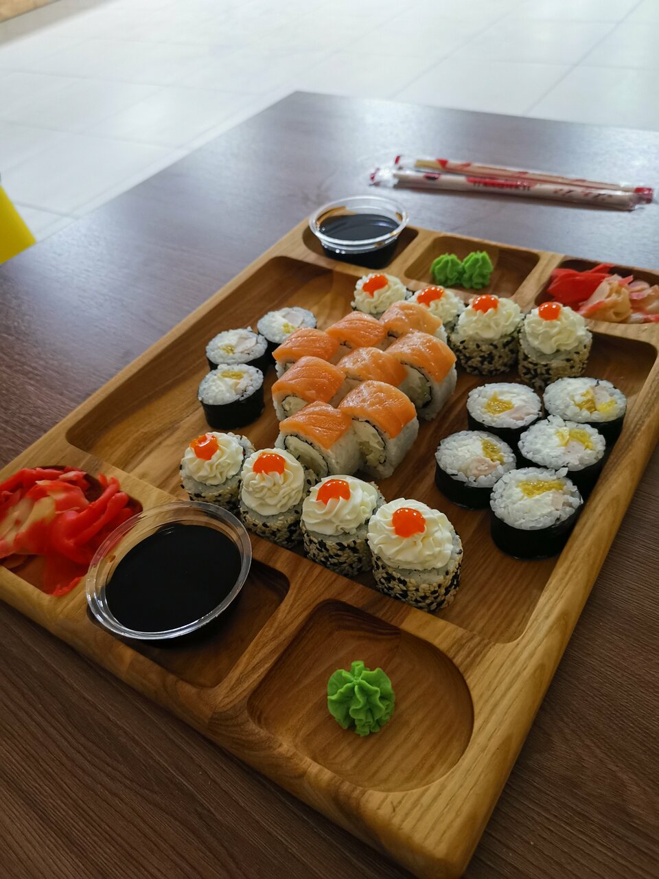В чём заключалась «специальность» этой Филадельфии — мы так и не поняли… Но дочери роллы очень понравились. Маруся сказала, что это самые вкусные суши, которые она пробовала. Хотя мне кажется, что ребёнок был просто очень голодным…
