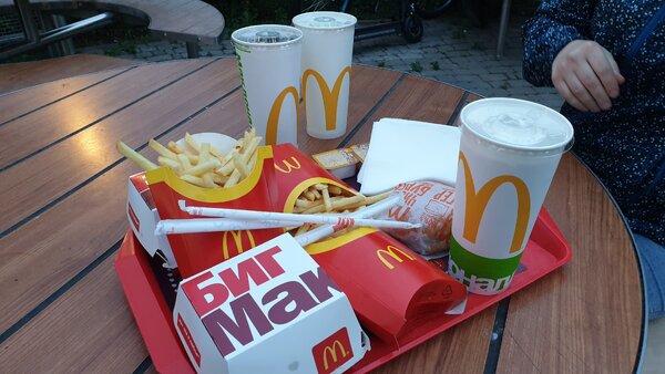 Весь заказ обошелся нам всего в 729 рублей. Для меня это стало открытием — «Мак» по-прежнему остается самым демократичным по ценам. Я и представить не мог, что классический Биг-Мак теперь можно купить всего за 72 рубля. Это действительно впечатляет.