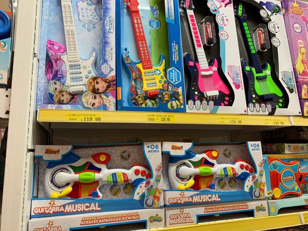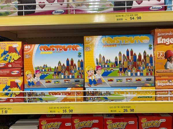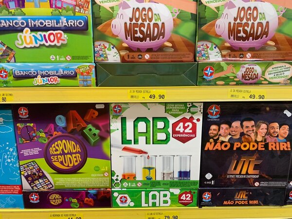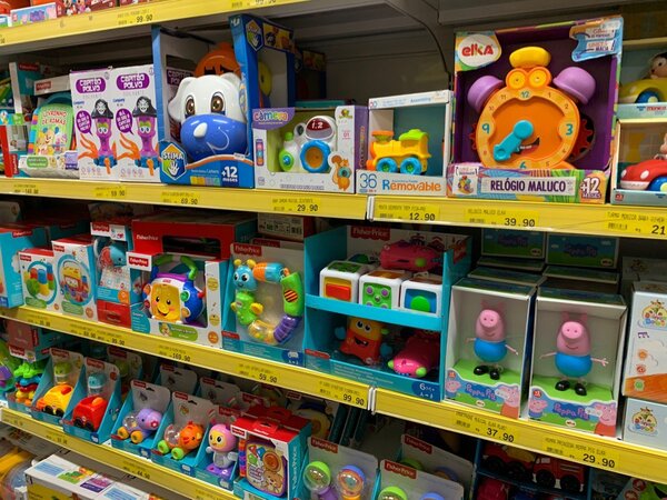 Когда я захожу в бразильские магазины игрушек, у меня часто возникает ощущение, будто я оказалась на дешёвом китайском рынке. Развивающие игрушки начали появляться на полках сравнительно недавно, и их ассортимент пока оставляет желать лучшего. Основная причина — невысокий спрос со стороны местных покупателей и довольно высокие цены на такие товары.