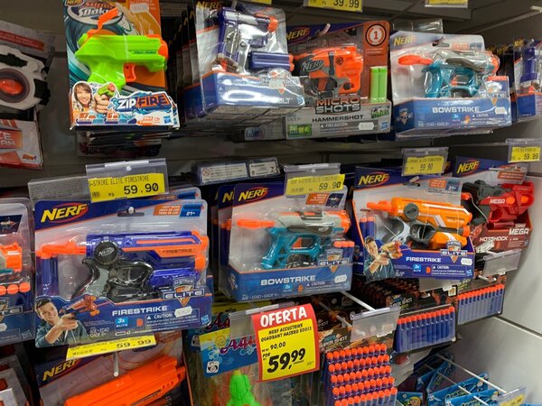 В нашем городском магазине выбор совсем скромный. Конечно, в крупных городах вроде Сан-Паулу ситуация получше, но и цены там заметно выше. Преобладают пластиковые изделия, а деревянные или тканевые игрушки встречаются крайне редко. Развивающих вариантов тоже очень мало.