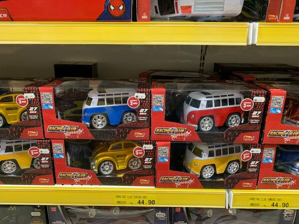 Начнём с транспорта для малышей. Вот такие простенькие и не слишком качественные машинки обойдутся вам в 1634 рубля (в пересчёте с бразильских реалов).