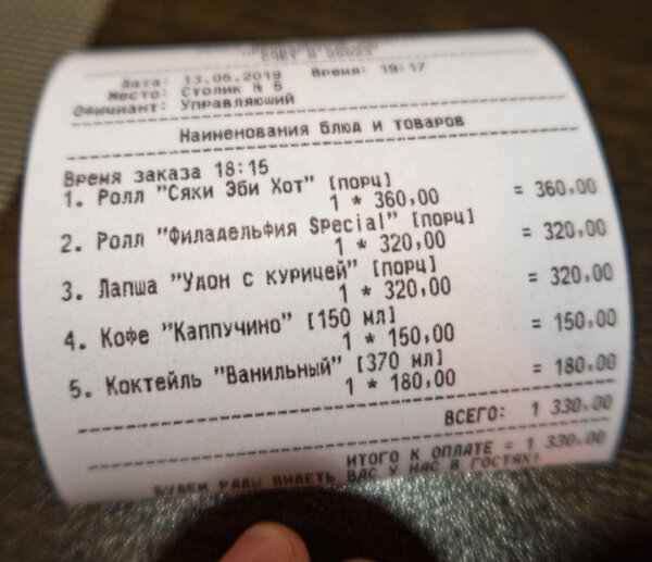 К тому же, вышло довольно дорого. Общая сумма чека составила 1330 рублей.