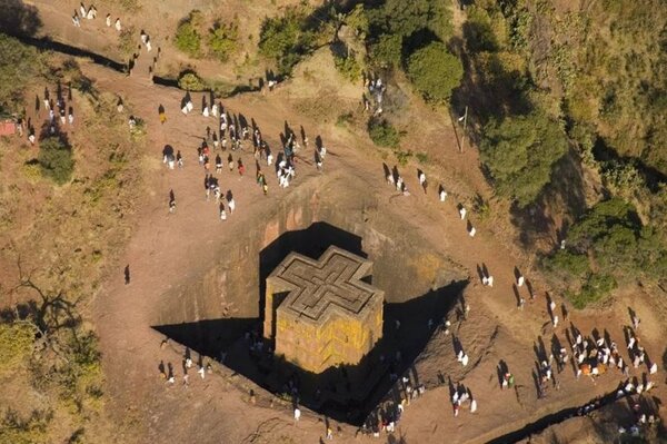 Прогуливаясь по Лалибэле, будто попадаешь на страницы Библии. Здесь есть и своя река Иордан, и церкви, носящие имена Голгофы, Синая, Масличной горы. Сердцем комплекса считается церковь Спасителя Мира — крупнейший в мире монолитный храм. А некоторые даже верят, что где-то в его таинственных подземельях до сих пор хранится величайшая святыня — Ковчег Завета.