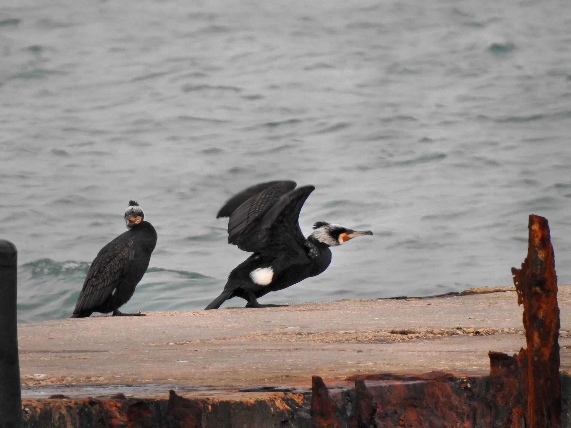 Вообще, в Крыму можно встретить три вида этих птиц: большого, малого и хохлатого баклана. Хохлатый, в отличие от большого, меньше размером и его оперение полностью чёрное, без характерных белых пятен на горле, груди и щеках.