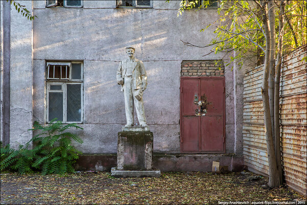Кто-то спрятал памятник рабочему где-то на заднем дворе отеля.