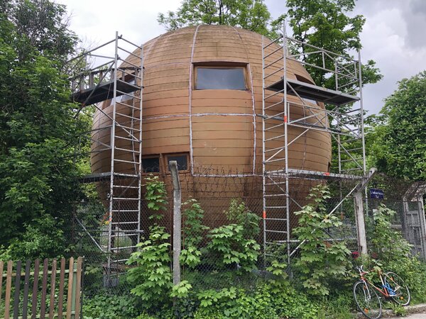 Конструкцию он собрал из дерева, обшив оцинкованным железом для защиты от непогоды. Но главной особенностью стала её форма — идеальная сфера, огромный шар. Именно эта геометрическая чистота и привела к конфликту с властями.
