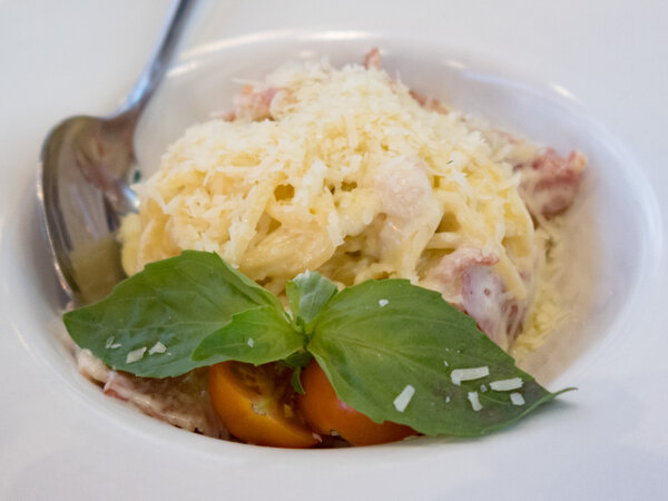 3. Паста «Карбонара» — 430 рублей. Дочь осталась в восторге от этого блюда, порция была сытной и хорошо приготовленной.