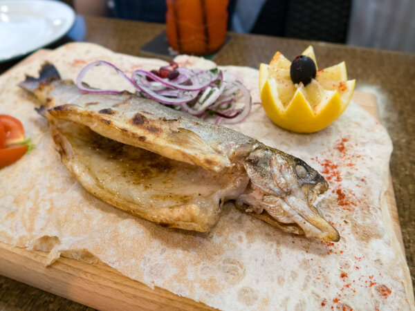 2. Форель речная на мангале — 230 рублей за 100 грамм. Наша порция весила 300 грамм, поэтому вышло 690 рублей. Рыба была идеально приготовленной, сочной и очень вкусной.