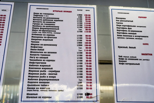 Меню столовой.