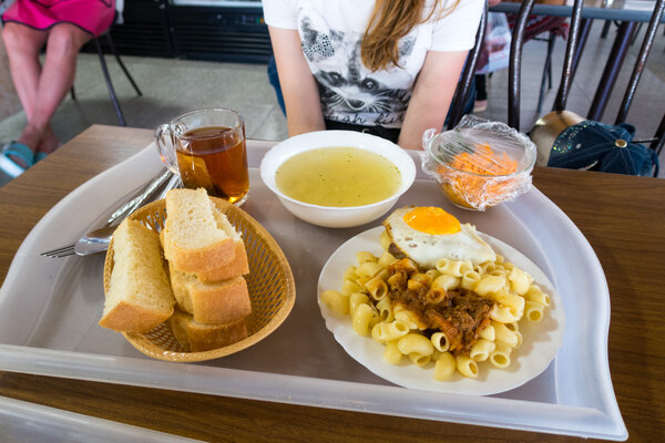 Кстати, в этой же столовой готовят роллы и шашлык — выбор довольно разнообразный.