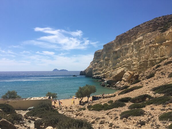 Место красивое, но, на мой взгляд, не стоит таких усилий. В Греции полно более доступных и не менее атмосферных пляжей. Правда, у Коккини Аммос есть большой плюс: здесь нет таких сильных волн, как на основном пляже Маталы.