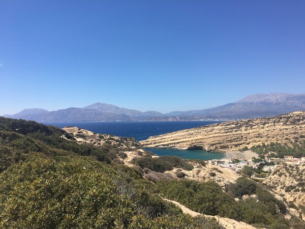 На греческом острове Крит нас ждала одна довольно забавная история. Мы отправились в деревню Матала — наверняка вы слышали о ней, если смотрели передачу «Орёл и решка», — чтобы увидеть бывшую «столицу» хиппи. В 1970-е годы сюда съезжались «дети цветов» со всего света, искавшие свободы и простой жизни.