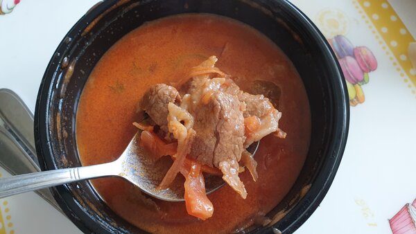 Борщ же и вовсе оказался выше всяких похвал: наваристый, ароматный, с щедрой порцией мяса.