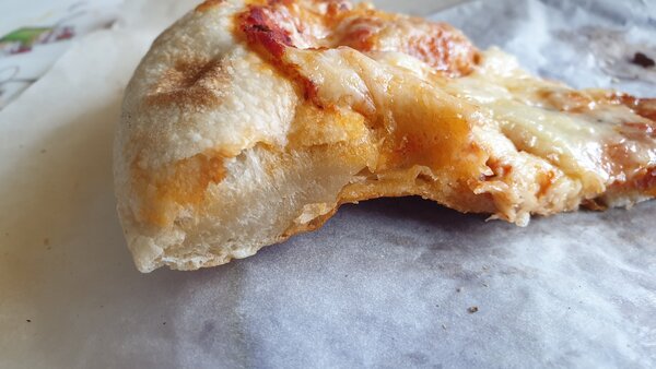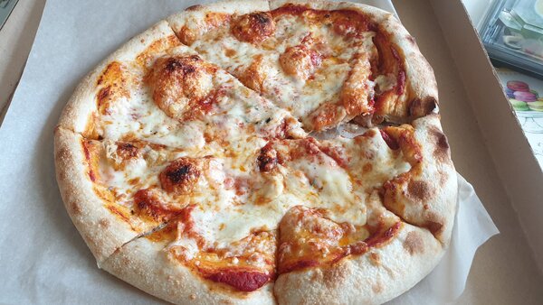 Пицца, к сожалению, стала полным провалом. Помимо того, что её доставили помятой, тесто внутри оказалось сырым.