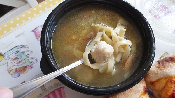А вот супы стали приятным сюрпризом. Куриный суп с фрикадельками моя дочь оценила на твёрдую «четвёрку».