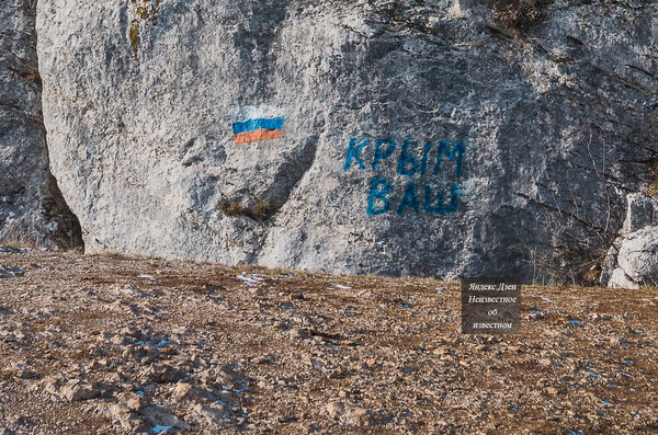 Виды с горы просто умопомрачительные. Я бродила вдоль кромки, выискивая удачный ракурс для фото, и вдруг замерла перед одной скалой. На ней была выведена надпись: «Крым ваш». Кто и когда её оставил — загадка. Но её не стирают, и она встречает всех, кто возвращается от обрыва обратно к канатной дороге, как тихий, но многозначительный привет.