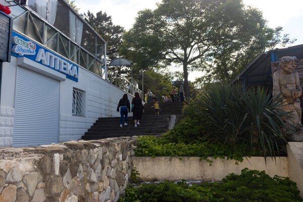 Нижняя набережная напомнила мне оживлённые променады Адлера и Сочи: здесь много торговых точек, кафе, столовых и ларьков. В сезон добавляются навязчивые зазывалы, из-за чего гулять здесь бывает некомфортно — скорее чувствуешь себя на рынке, чем на курорте.