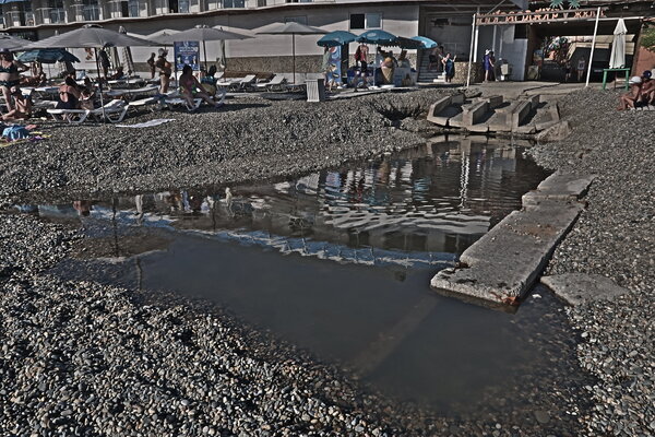 3. Проблема чистоты моря. Этот минус вытекает из предыдущего. Вдоль береговой линии построено множество частных гостиниц, многие из которых не имеют современной системы канализации. В результате ливневые стоки и неочищенные сбросы попадают прямо в море. В жаркие месяцы (конец июня — август) это приводит к всплеску кишечных инфекций среди отдыхающих. После дождей ситуация ещё больше ухудшается. Местные в этот период предпочитают не купаться. Исключение — Имертинская низменность, где с инфраструктурой всё в порядке. Этой теме я также посвятила отдельный материал.
