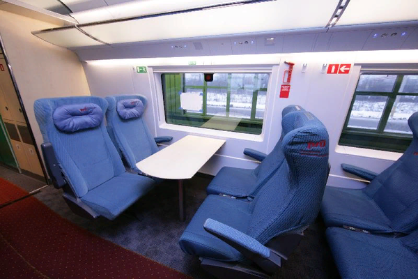 Формально в «Сапсане» представлено семь классов обслуживания. Это базовый и эконом-классы (лично я так и не уловил между ними существенной разницы), «эконом +», где уже включено питание и есть розетки у каждого кресла, вагон-бистро с питанием на сумму 2000 рублей, а также бизнес-класс, первый класс и специальное купе-переговорная.