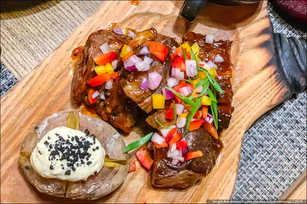 Признаюсь, я сам большой любитель мяса и далёк от вегетарианства. Мне просто стало любопытно, как отреагирует местный персонал. Ведь Казахстан — это настоящая мекка для мясоедов, где мясо — основа, кульминация и главный герой любого застолья.