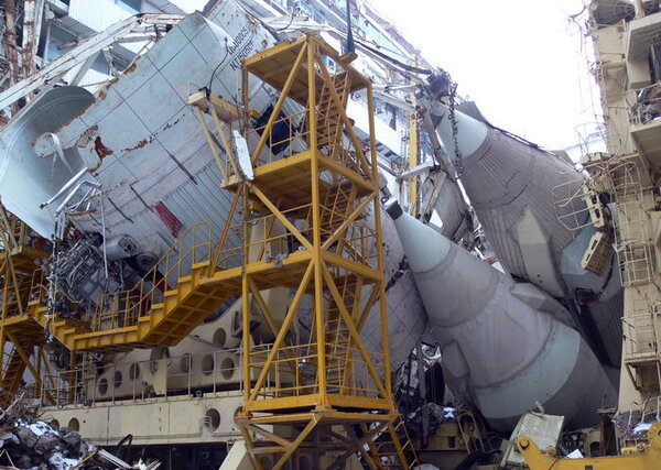 Носовая часть «Бурана» после катастрофы. Фото — https://www.kik-sssr.ru