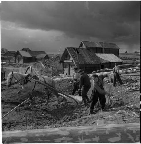 Фотографии строительства датированы 1944 годом (их, естественно, делали финские военные), и по погоде видно, что на дворе поздняя весна или начало лета. По сути, это одни из последних кадров, сделанных незадолго до того, как финские части покинули деревню.