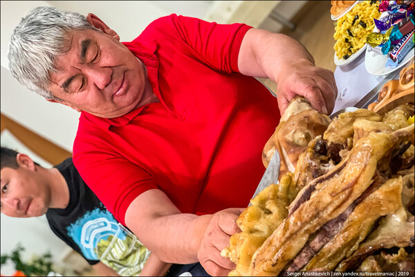 Уши традиционно отдают самым младшим — детям, чтобы они «слушались старших». Небо получает самый красноречивый гость или оратор. Нежные щеки небольшими кусочками раздают всем почетным гостям как знак особого внимания.