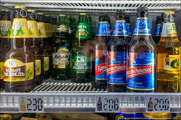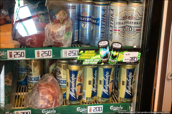 Можно найти и казахстанское пиво. Его цена сопоставима с российским: 200-230 тенге за пол-литра (33-38 рублей).