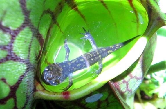 На этом фото можно увидеть саламандр, уже ставших добычей растения.