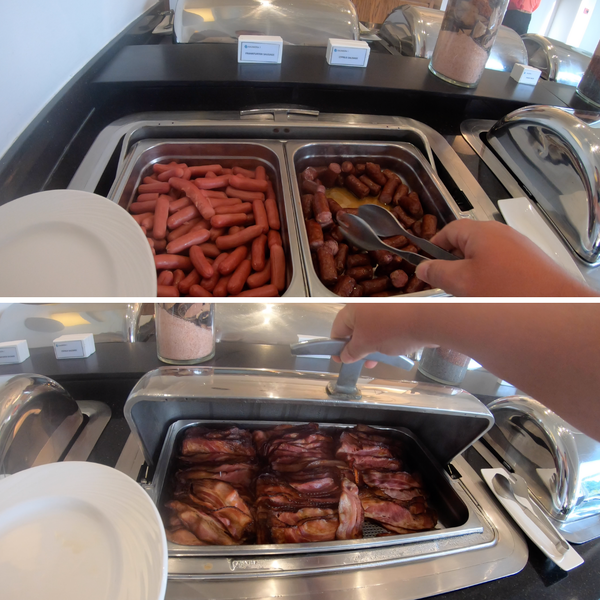 Сосиски, на мой вкус, оказались совершенно неприятными, а бекон больше напоминал вареный, а не жареный.