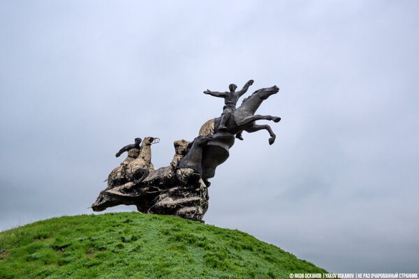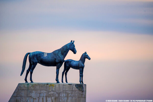 Возле конного завода – памятник лошадям будённовской породы, которых вывели здесь, на Дону.