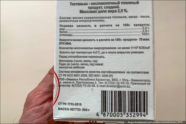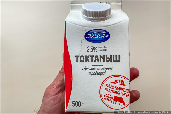 Некоторые зрители моей дегустации предположили, что это аналог ряженки. Я с этим не совсем согласен: классическая ряженка, на мой вкус, не такая сладкая. «Токтамыш» же ощущается скорее как ряженка с добавлением сахара. Возможно, в России есть его прямой аналог — буду рад, если поделитесь в комментариях.
