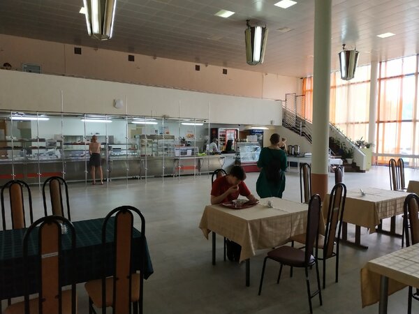 Кухня в общежитии одна на весь этаж. Она просторная, но оборудование, особенно плиты, старое и работает не всегда хорошо. Зато в здании есть собственная столовая, которая открыта с 7 утра до 10 вечера. Ассортимент там довольно разнообразный — даже вегетарианцы находят для себя подходящие варианты.