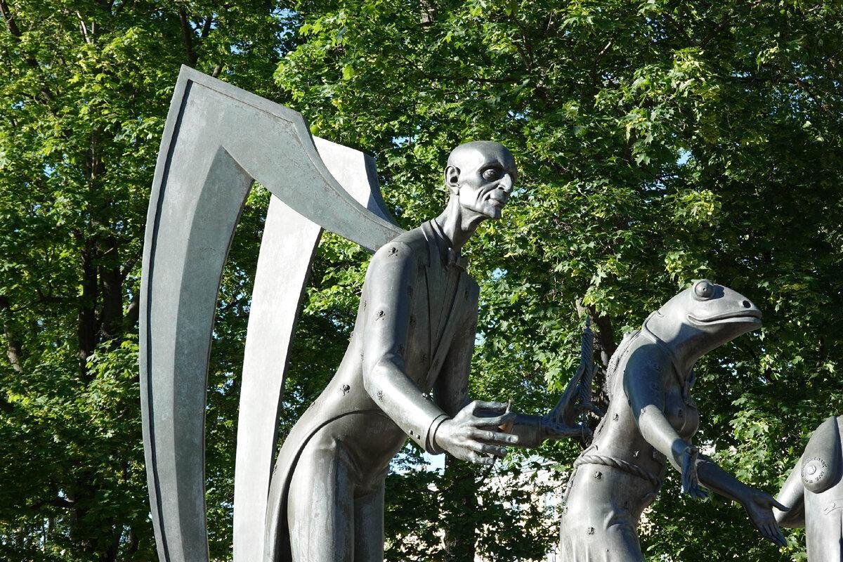 Сейчас на этом месте разбит небольшой сквер, а в 2001 году в его северо-восточной части появился необычный памятник. О нём мне как-то рассказал однокурсник, пригласив посмотреть на так называемых «шемякинских уродов». Я согласился, даже не подозревая, насколько сильное впечатление он на меня произведёт.