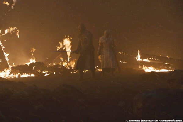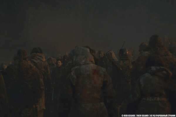 А начало битвы? Конницу, без какой-либо разведки, посылают в атаку прямо в темноту, хотя прекрасно известно, что каждый павший воин пополнит ряды армии мертвецов. Лишиться всей кавалерии за пять минут — это надо постараться. И зачем тогда поджигать их араки, если они сгорели быстрее, чем успели разглядеть противника? И почему дотракийцы, известные как грозные всадники, в метель сражаются практически голыми руками? Вопросы повисают в воздухе.