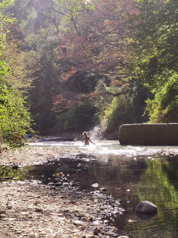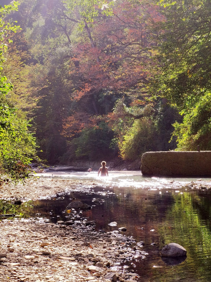 Дошли до развилки дорог и рек Агура и Агурчик. Отсюда была дорога до кемпинга, а в противоположную сторону – до родника. Предложила Олегу оставить рюкзак и сходить разведовать потенциальное место ночевки, а я бы посмотрела, что здесь.