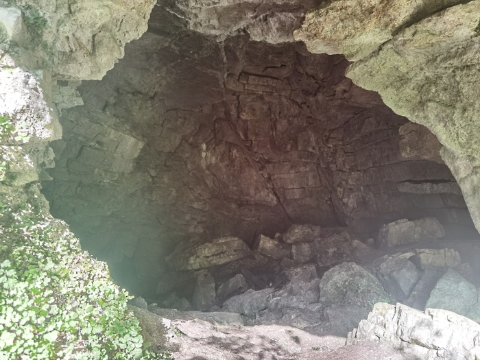 До места предполагаемой стоянки оставалось около получаса пути. Решили немного сойти с тропы и посмотреть на грот. В общем, ничего интересного там не обнаружили, кроме кострища совсем не древнего человека.